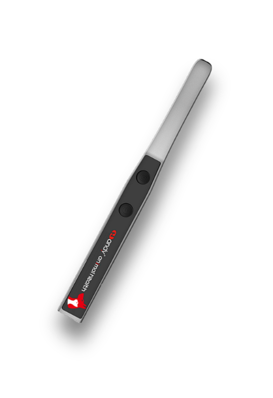 Fabricado con aleación de aluminio galvanizado, su carcasa es duradera y fácil de limpiar. Su textura y diseño se asemejan a una pieza de mano dental, lo que facilita su manejo por los profesionales.